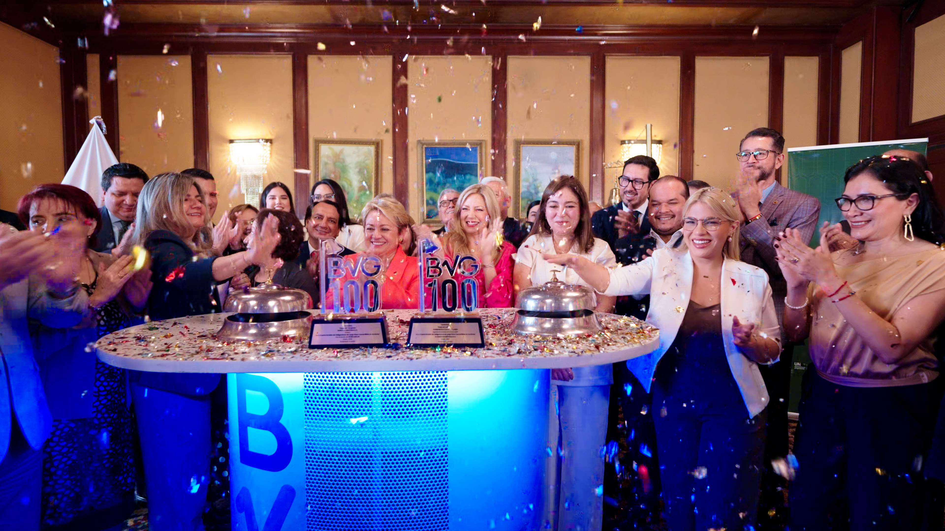 En este contexto, la Bolsa de Valores de Guayaquil (BVG) conmemoró junto al Banco su “Centésimo Toque de Campana”, un acto simbólico que celebra operaciones relevantes en el mercado bursátil ecuatoriano.