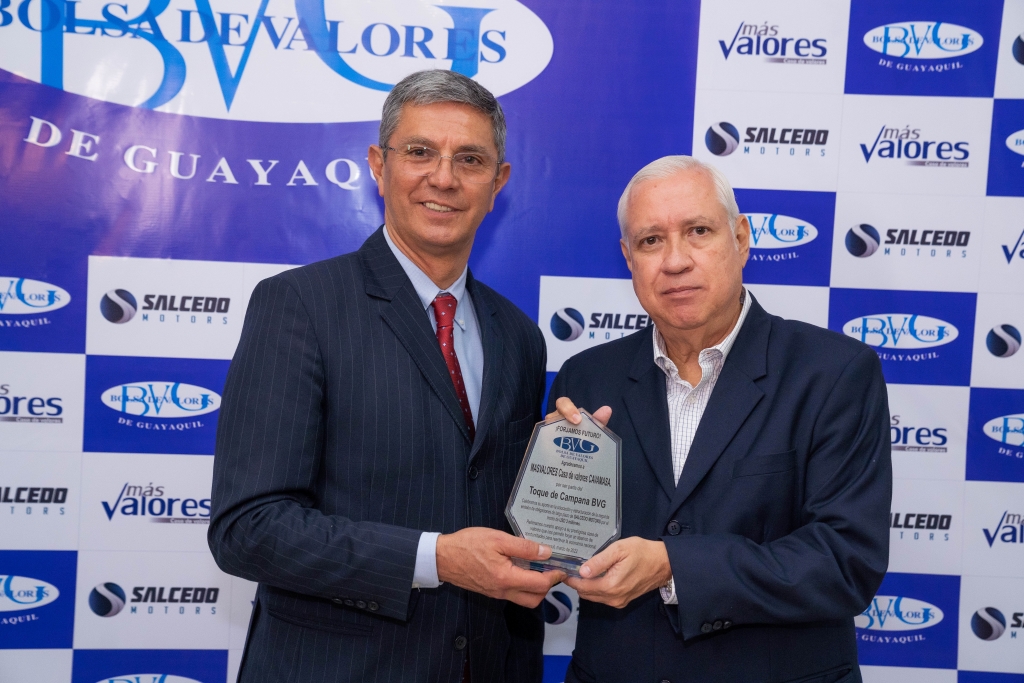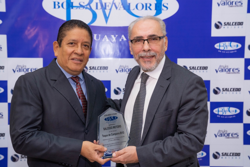 Con la segunda emisión de obligaciones por USD 3 millones por parte de Salcedo Motors, la Bolsa de Valores de Guayaquil (BVG) celebró su décimo quinto Toque de Campana. El evento contó con la presencia de representantes de la empresa emisora, de MasValores Casa de Valores y ejecutivos de la BVG.